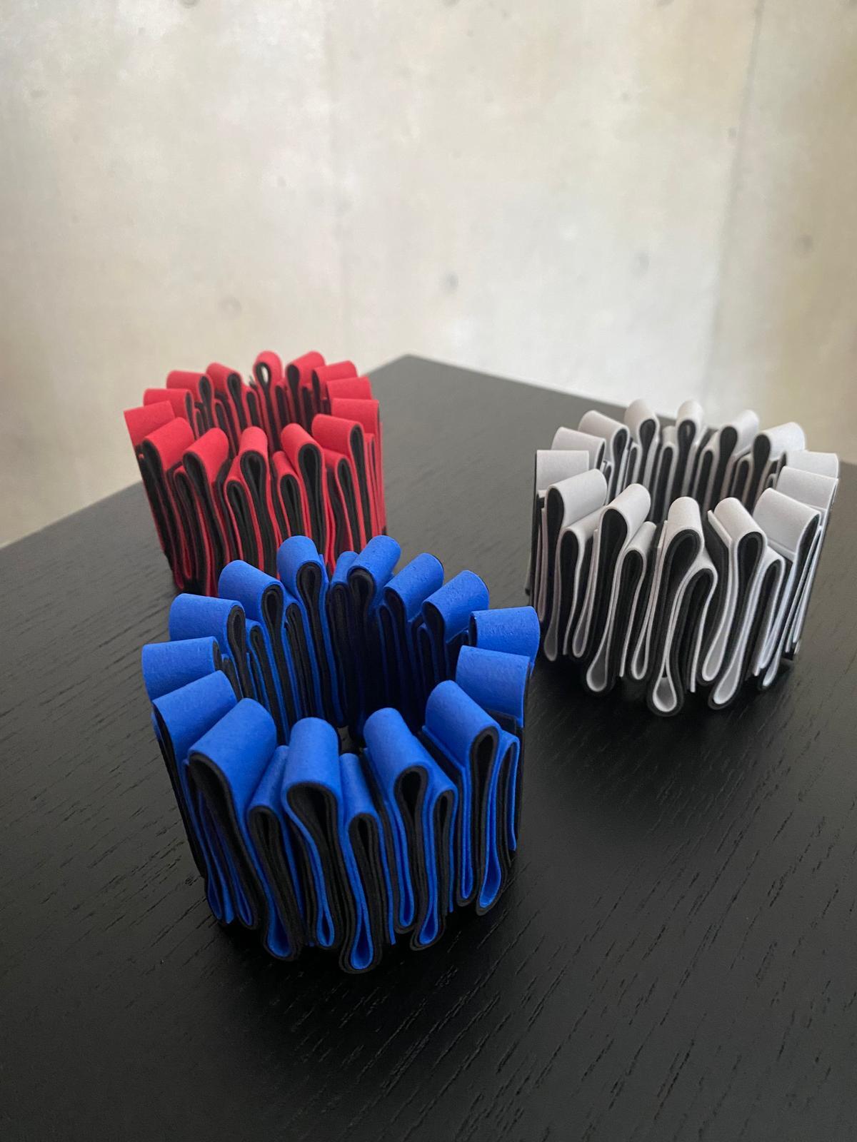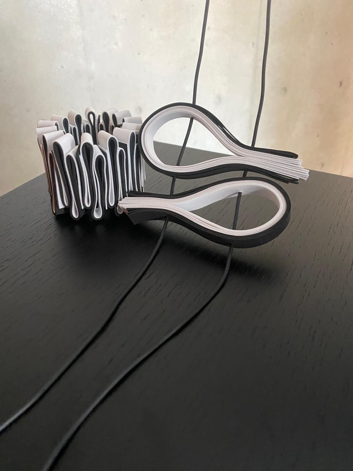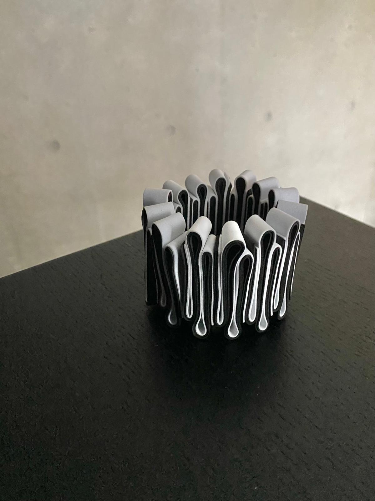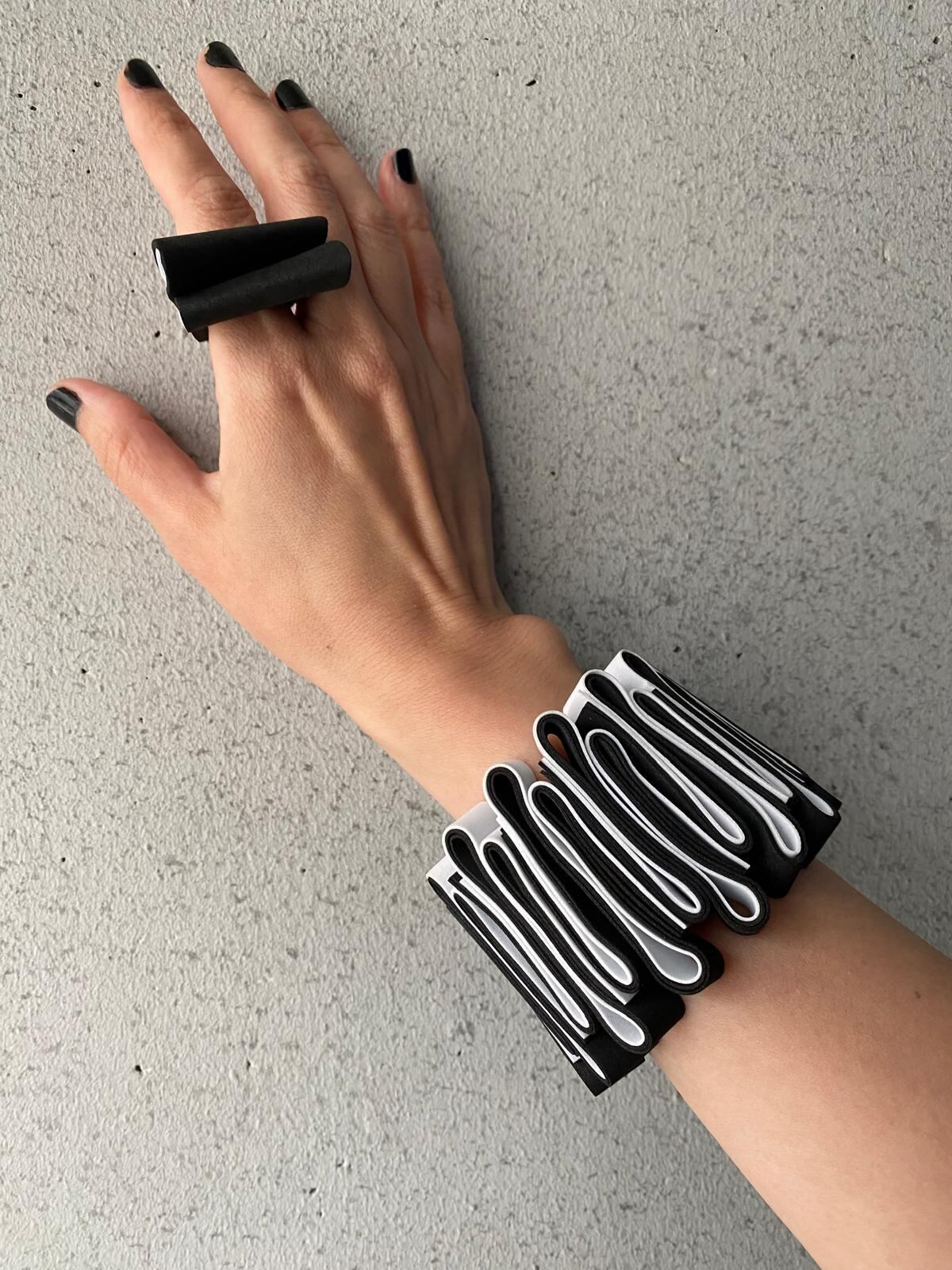 ユニークなデザインと軽やかな装着感が魅力のOnda Bracelet (white x black)。白と黒のコントラストがクールな印象を与え、腕元をお洒落に彩ります。