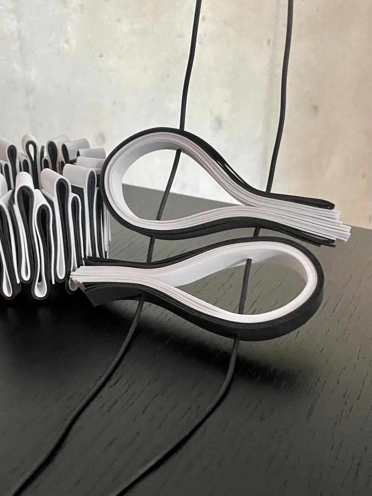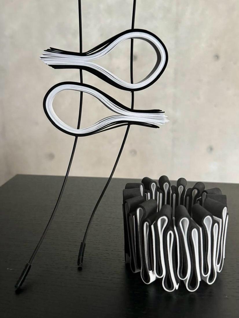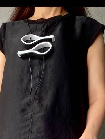 オリジナルデザインのOnda ネックレスはシンプルでありながら、自由に形を変えたり、好みの位置に調整が可能なコンセプトになっています。清潔感のあるホワイトカラーと引き締め効果のブラックカラーのコンビネーションはさまざまなコーディネートにも馴染み、とてもおしゃれなアクセントになります。
