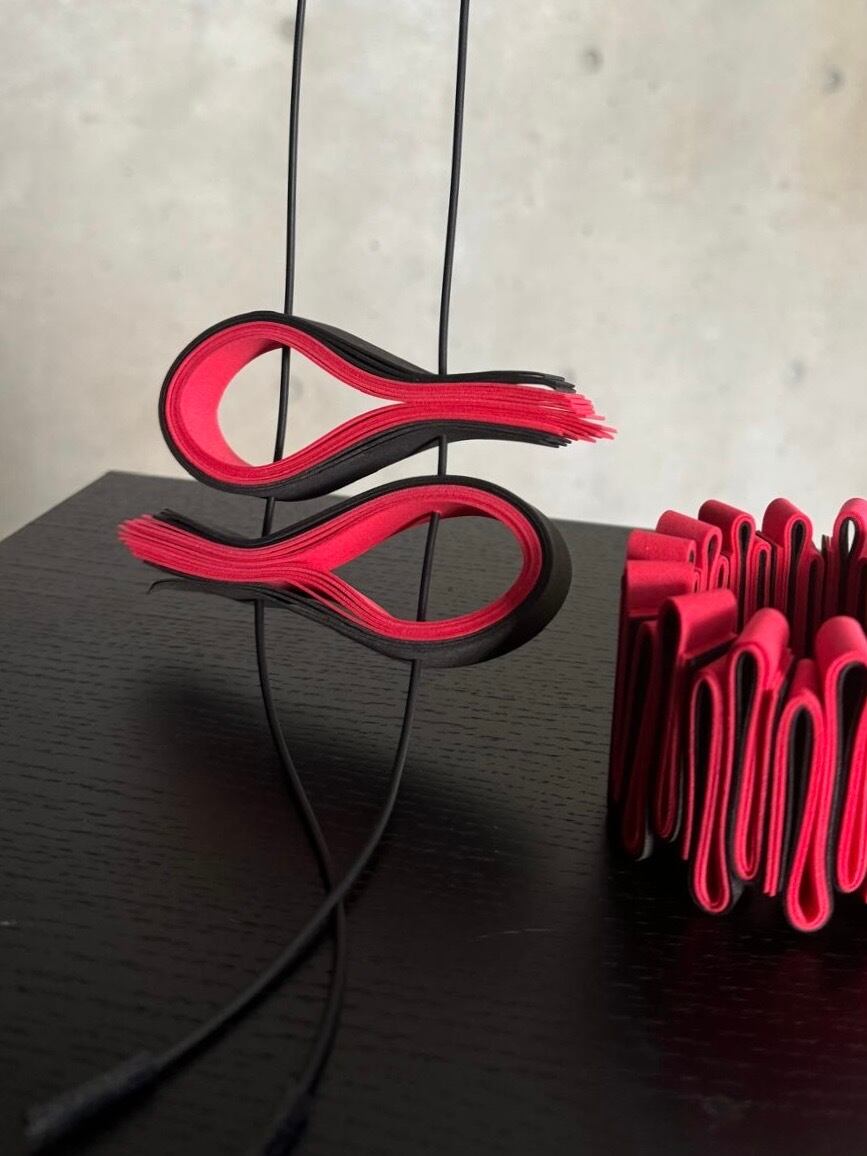 オリジナルデザインのOnda ネックレスはシンプルでありながら、自由に形を変えたり、好みの位置に調整が可能なコンセプトになっています。赤と黒のコントラストが洗練されたスタイルを演出し、周囲の視線を引き付けること間違いなしです。