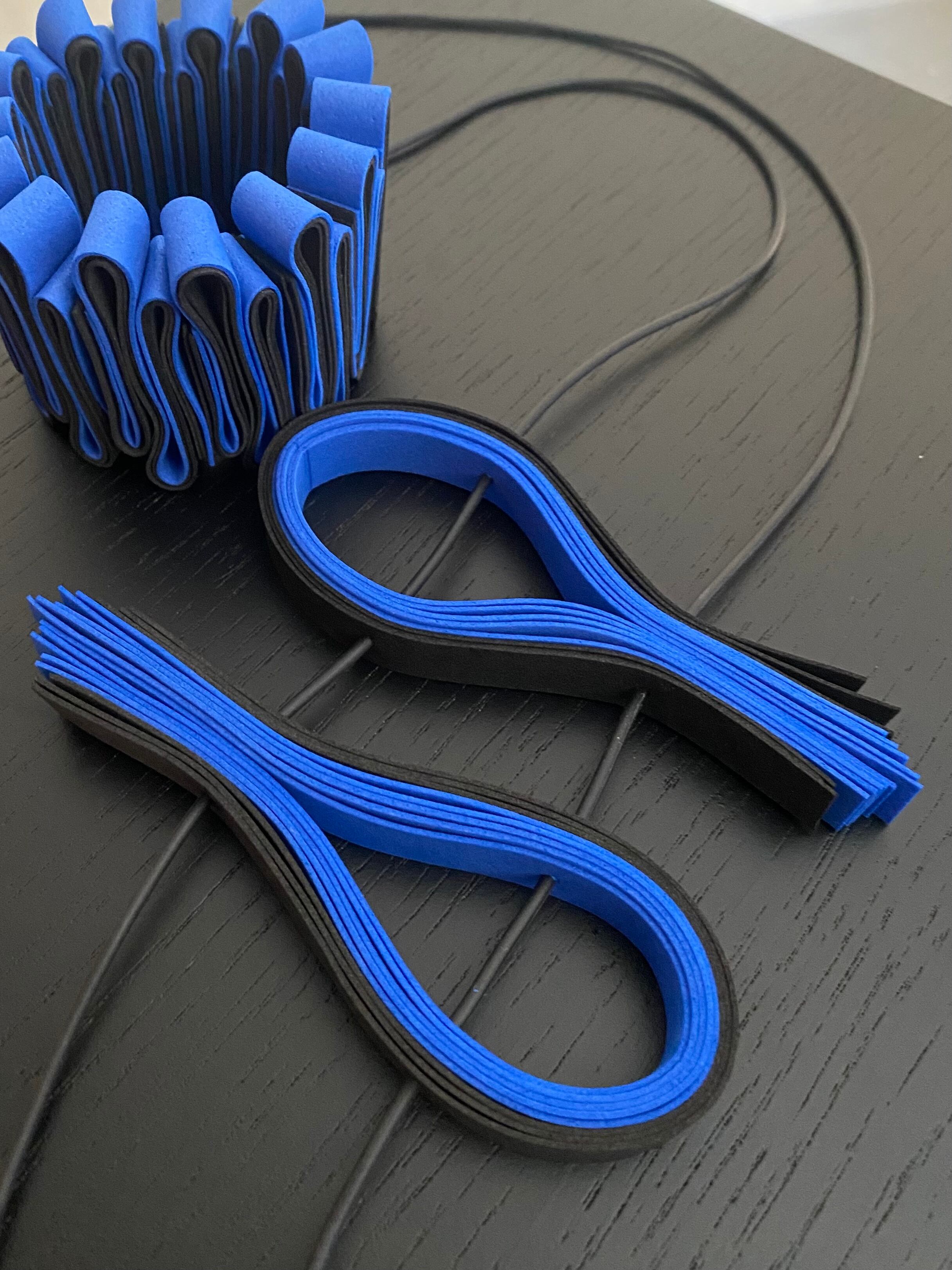 オリジナルデザインのOnda ネックレスはシンプルでありながら、自由に形を変えたり、好みの位置に調整が可能なコンセプトになっています。シンプルなデザインながらも青と黒のコントラストが洗練されたスタイルを演出し、周囲の視線を引き付けること間違いなしです。