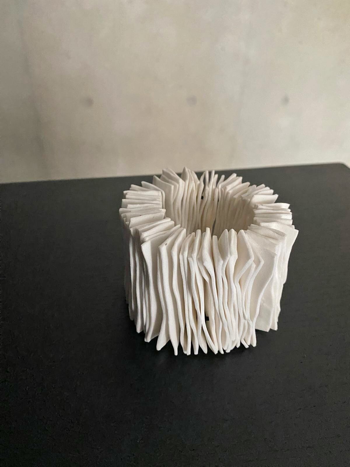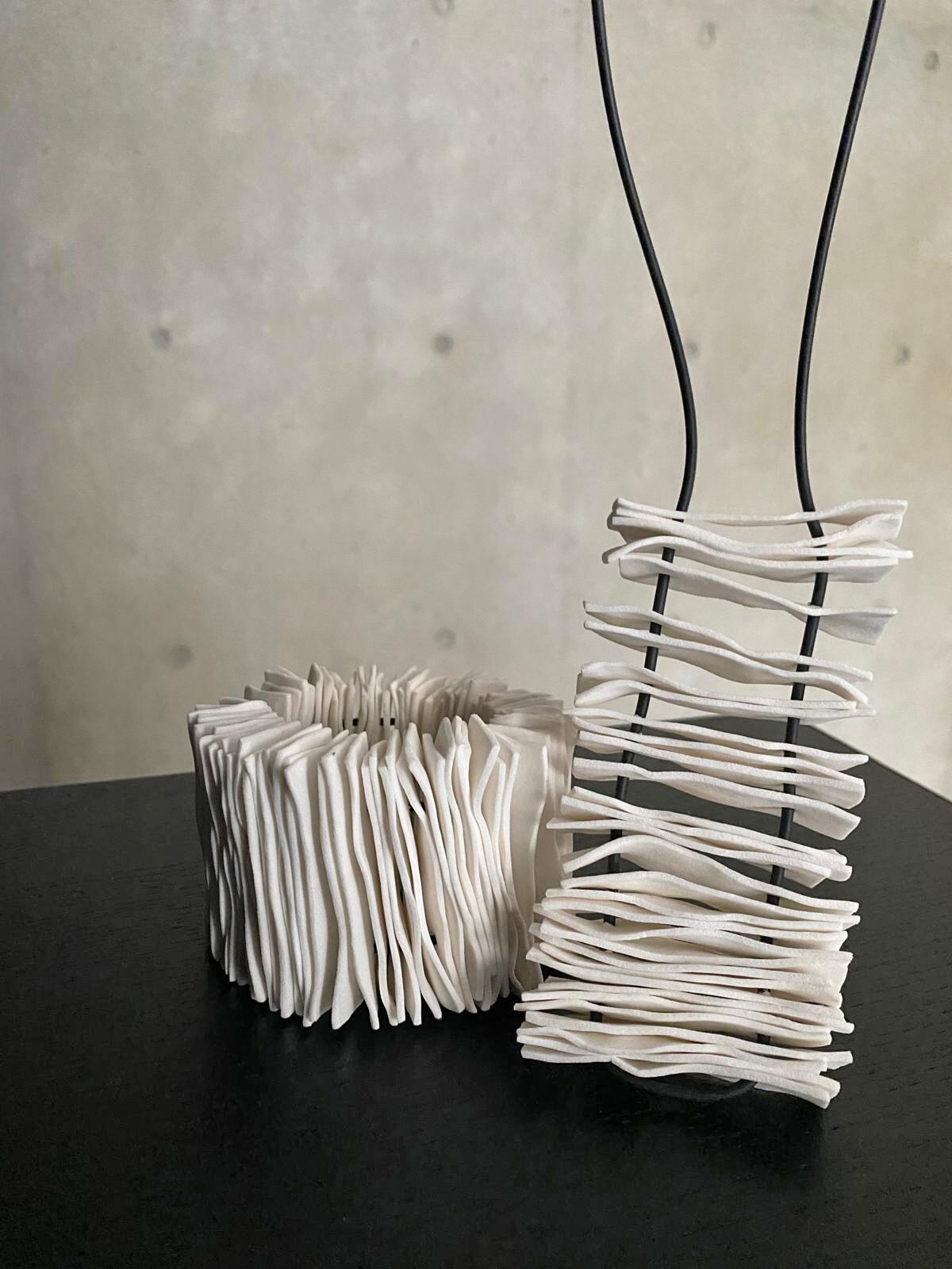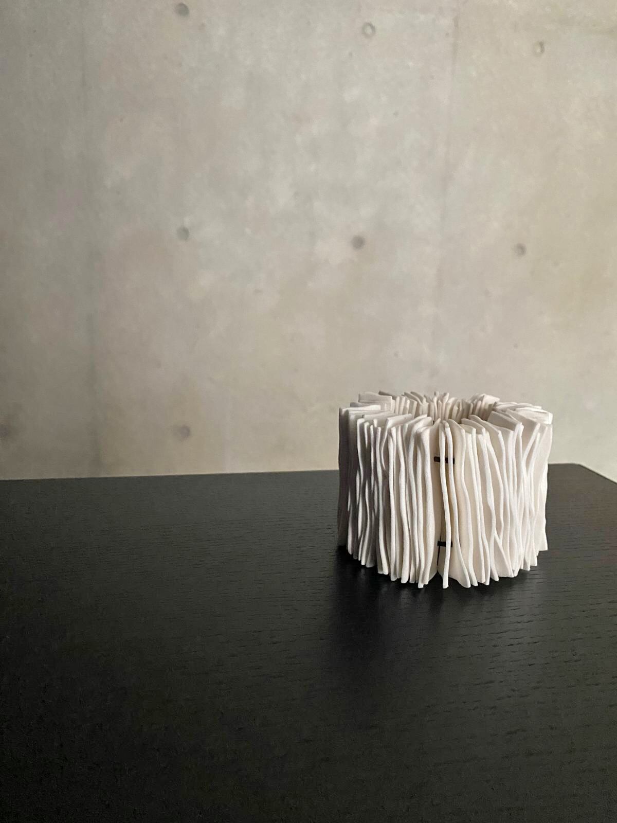 「Coral Bracelet (White)」。まるで白い珊瑚の様な見た目に仕上がりましたので、Coral Braceletと名付けました。清潔感を演出し、どんなコーディネートにもマッチします。金属アレルギーをお持ちの方にも安心してお使いいただける素材を厳選しました。
