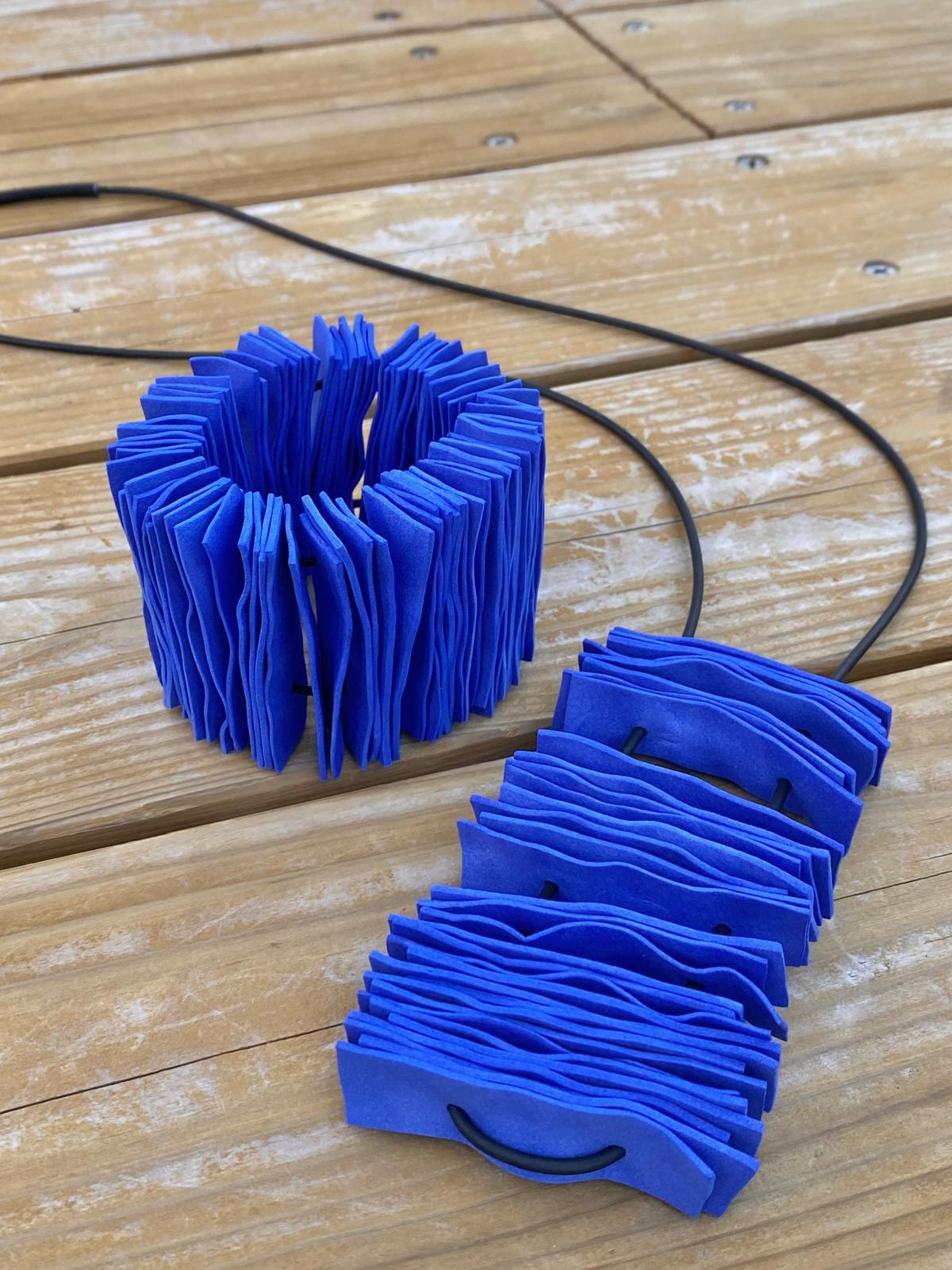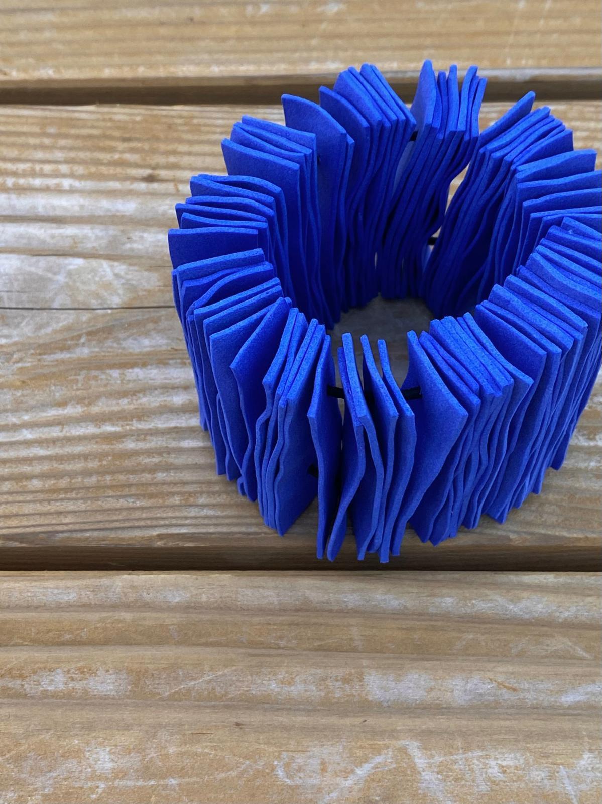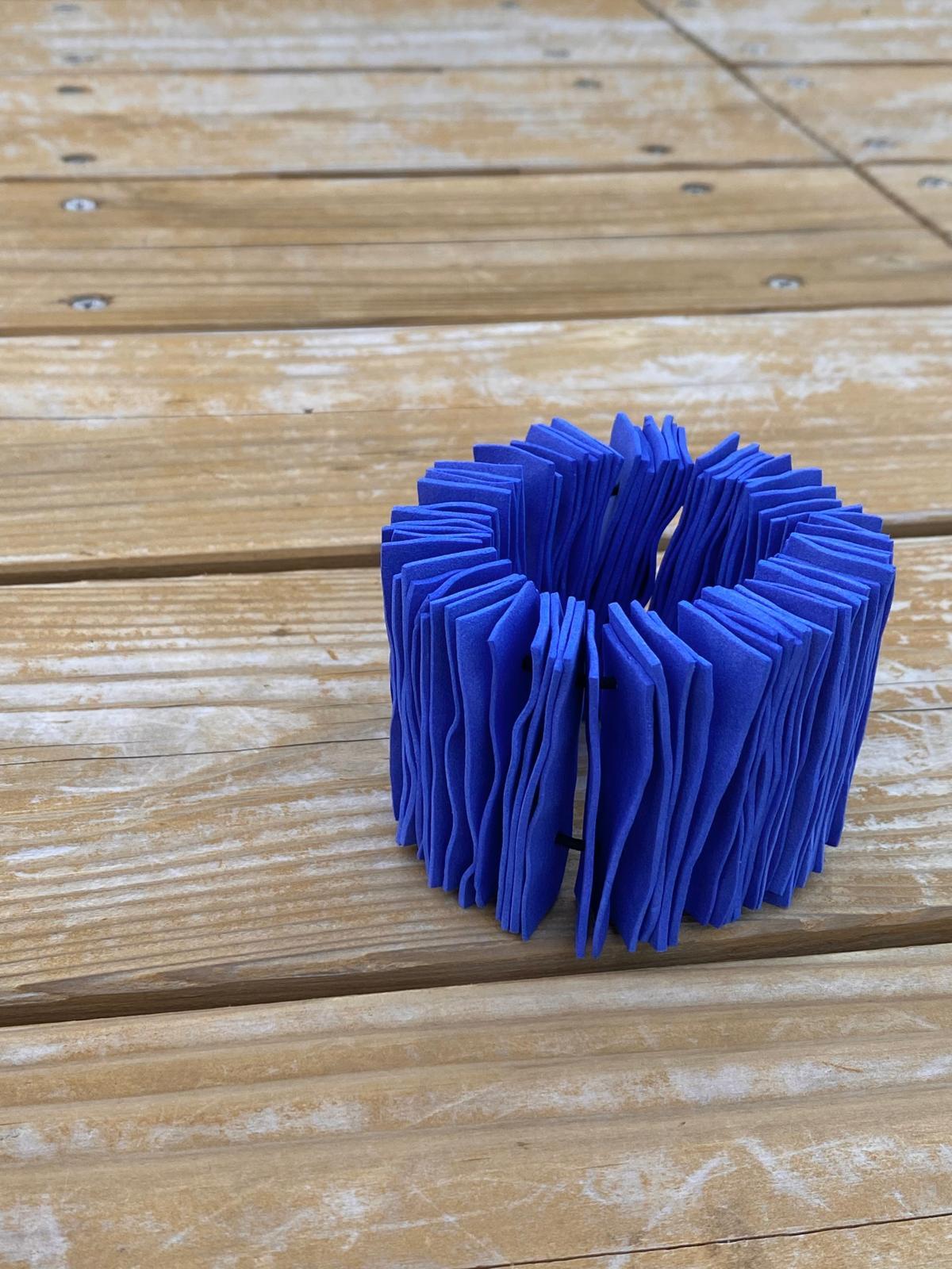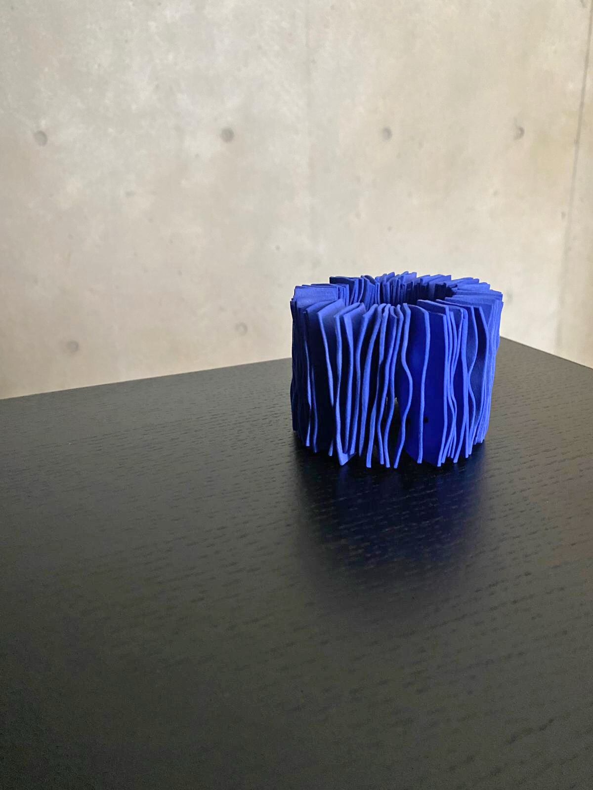 「Coral Bracelet (Blue)」。珊瑚の様な見た目に仕上がりましたので、Coral Braceletと名付けました。清潔感を演出し、どんなコーディネートにもマッチします。金属アレルギーをお持ちの方にも安心してお使いいただける素材を厳選しました。
