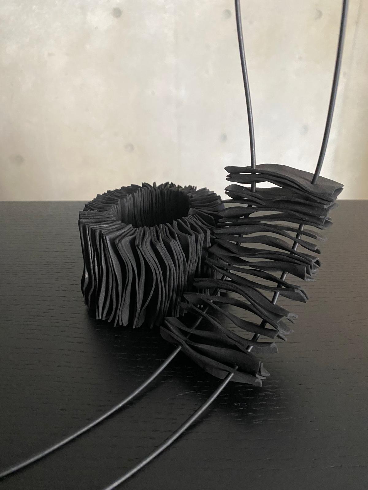「Coral Bracelet (black)」。まるで珊瑚の様な見た目に仕上がりましたので、Coral Braceletと名付けました。清潔感を演出し、どんなコーディネートにもマッチします。金属アレルギーをお持ちの方にも安心してお使いいただける素材を厳選しました。